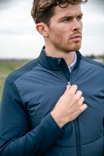 Mixed Media Full Zip Jacket – Premium water-resistant garment for the coldest of golf days, featuring a Sherpa fleeced interior. Available in Caviar and Peacoat colours.