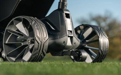 The lightweight, yet powerful battery incorporating patented auto-disconnect technology automatically powers off the trolley when folded, with a revolutionary pop-up port for quick and easy charging – innovative functions exclusive to the brand. New look ergonomic handle grips and premium 10-spoke low-profile aerodynamic tyres with rugged all-terrain tread completes the sleek new 2026 design, along with a retractable rear anti-tip stabilising wheel which can remain attached for folding.