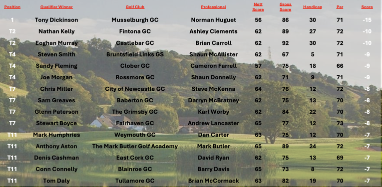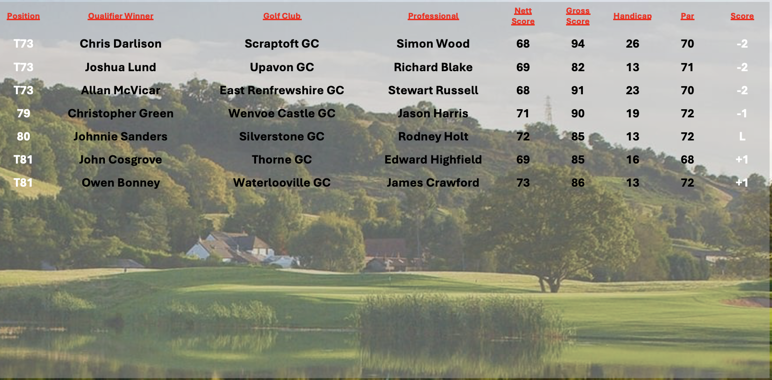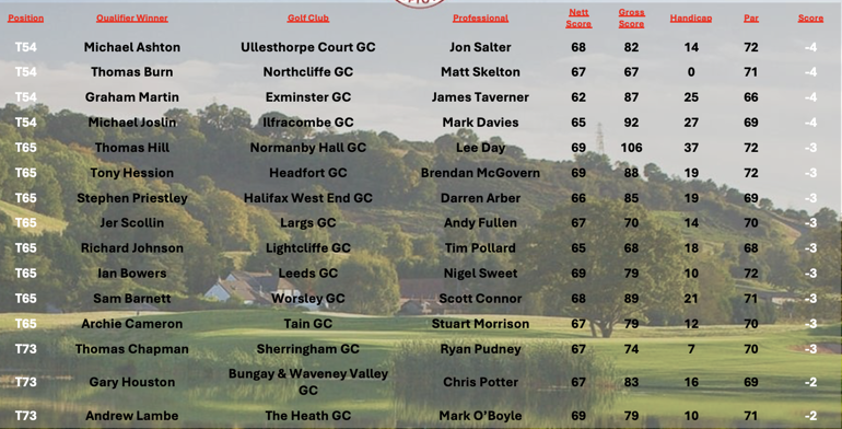 We now have 82 results on the board out of the 90 qualifying events, look out for the next update to the leaderboard which will have the top 20 who will be attending the final at the stunning Celtic Manor in September.